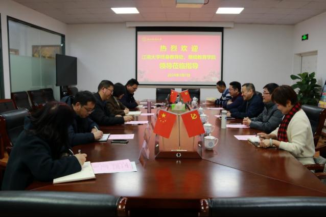 3月7日下午,江南大学终身教育处处长、304am永利集团院长王育红一行5人来永利调研交流。社会合作处处长杨剑勇、副处长蒋云兵出席座谈会,学院领导班子成员和相关部门负责人参加。
